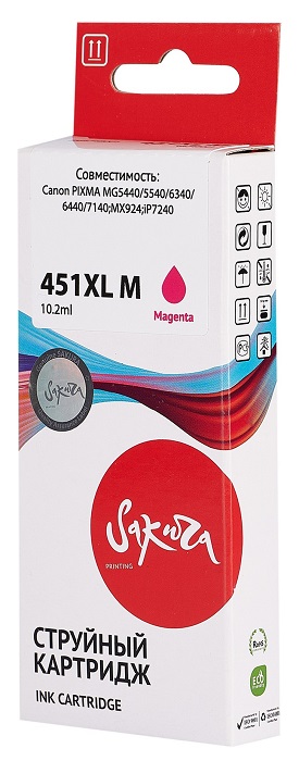 Посмотреть и купить Картридж струйный Sakura 6474B001 (451XL M) для Canon PIXMA MG5440/5540/6340/6440/7140, MX924, iP7240, водорастворимый тип чернил, пурпурный, 660 к.. Город Зея