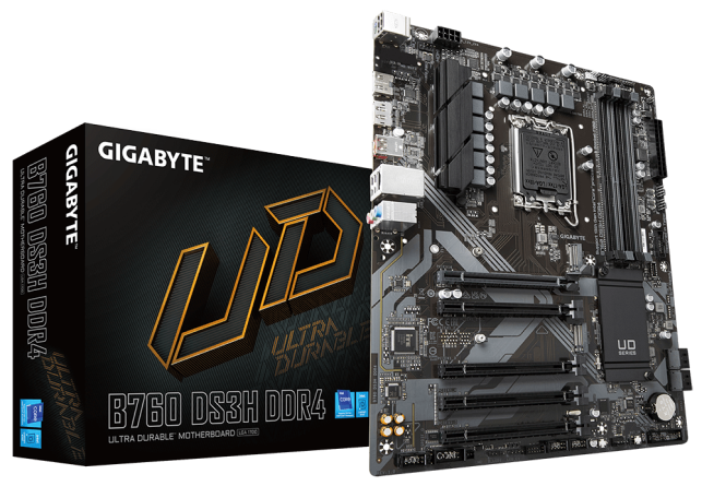 Материнская плата ATX GIGABYTE B760 DS3H DDR4 (LGA1700, B760, 4*DDR4 (5333), 4*SATA 6G RAID, 2*M.2, 5*PCIE, Glan, HDMI, DP, USB Type-C, USB 3.2, 4*USB